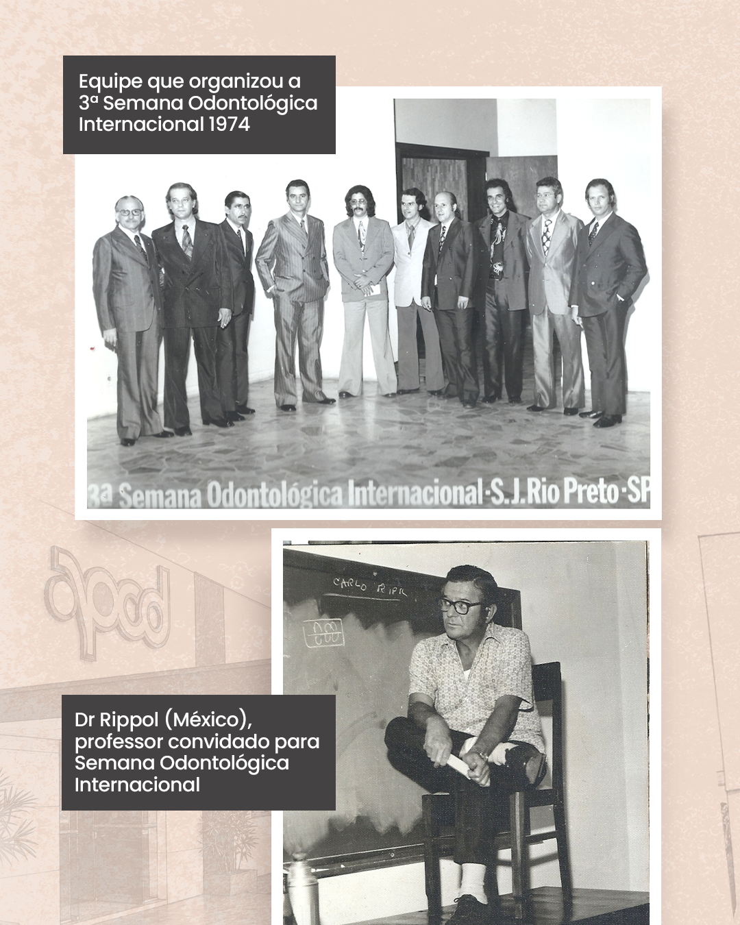 - A 3ª Semana Odontológica Internacional (1974) trouxe professores convidados do exterior, como o Dr. Rippol, do México.