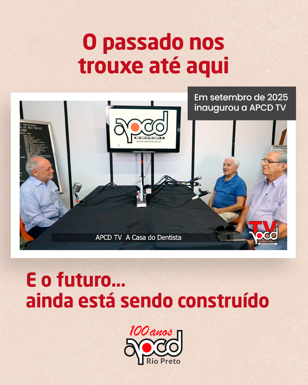 A APCD Rio Preto chegou ao seu centenário sem abrir mão da renovação. Em setembro de 2025, foi inaugurada a APCD TV, novo canal de comunicação e educação continuada — expressão da capacidade da entidade de se adaptar às demandas de cada época, sem abrir mão de sua missão essencial.